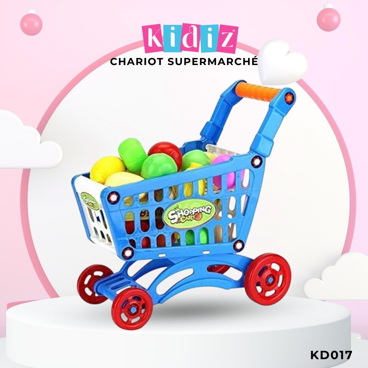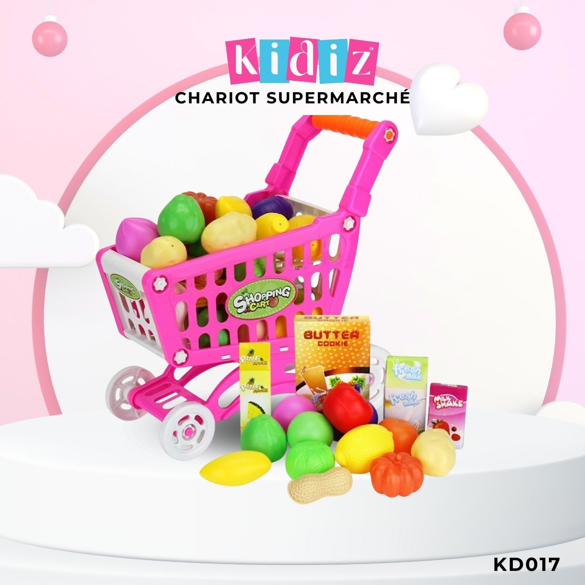 Ce jouet éducatif avec chariot et 16 pièces d’épicerie aide les enfants à développer leurs compétences tout en servant de rangement pour leurs jouets.