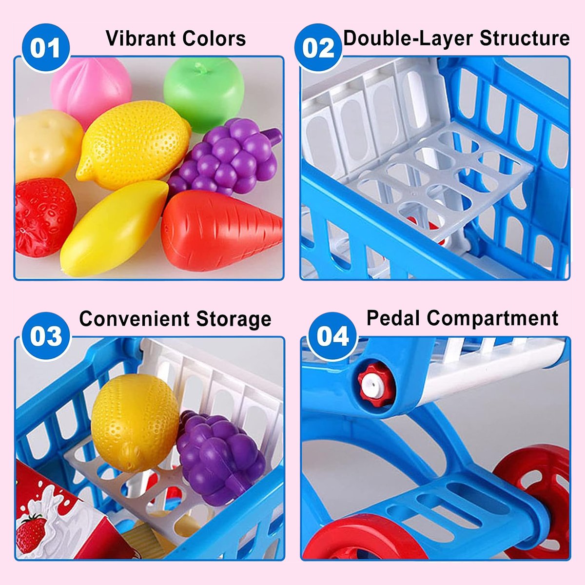 Ce jouet amusant et éducatif permet aux enfants de jouer à préparer des fruits, leur aidant à se souvenir des noms des fruits et à développer leurs compétences en comptage. Le chariot de courses est conçu pour encourager l’assemblage, tout en exerçant le cerveau de l’enfant et ses capacités pratiques. Grâce à ses 16 pièces d’épicerie, il rend le chariot de courses encore plus attrayant, offrant aux enfants une expérience de jeu complète et stimulante. Ce jouet aide à développer des compétences importantes, telles que l’équilibre, l’imagination et la créativité.