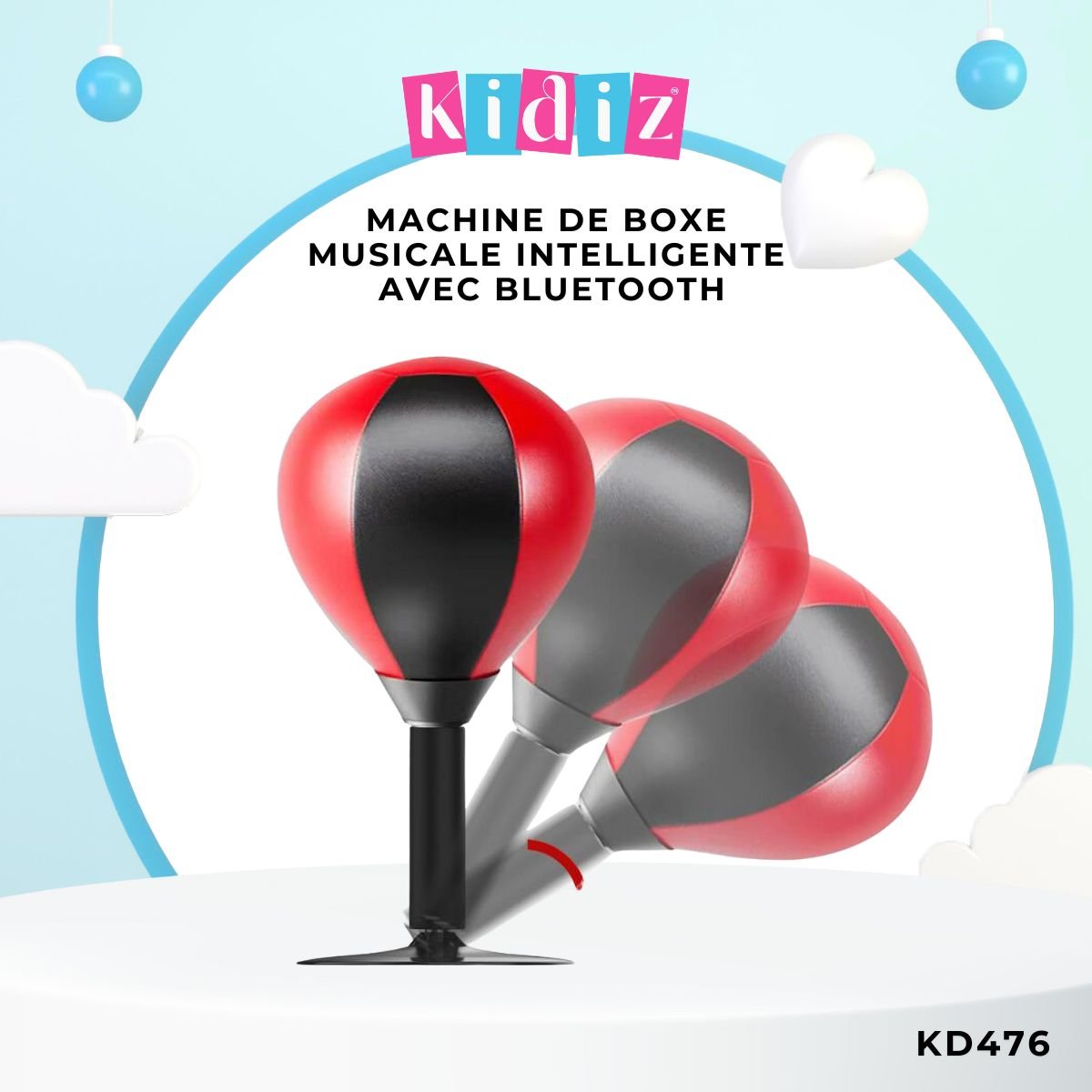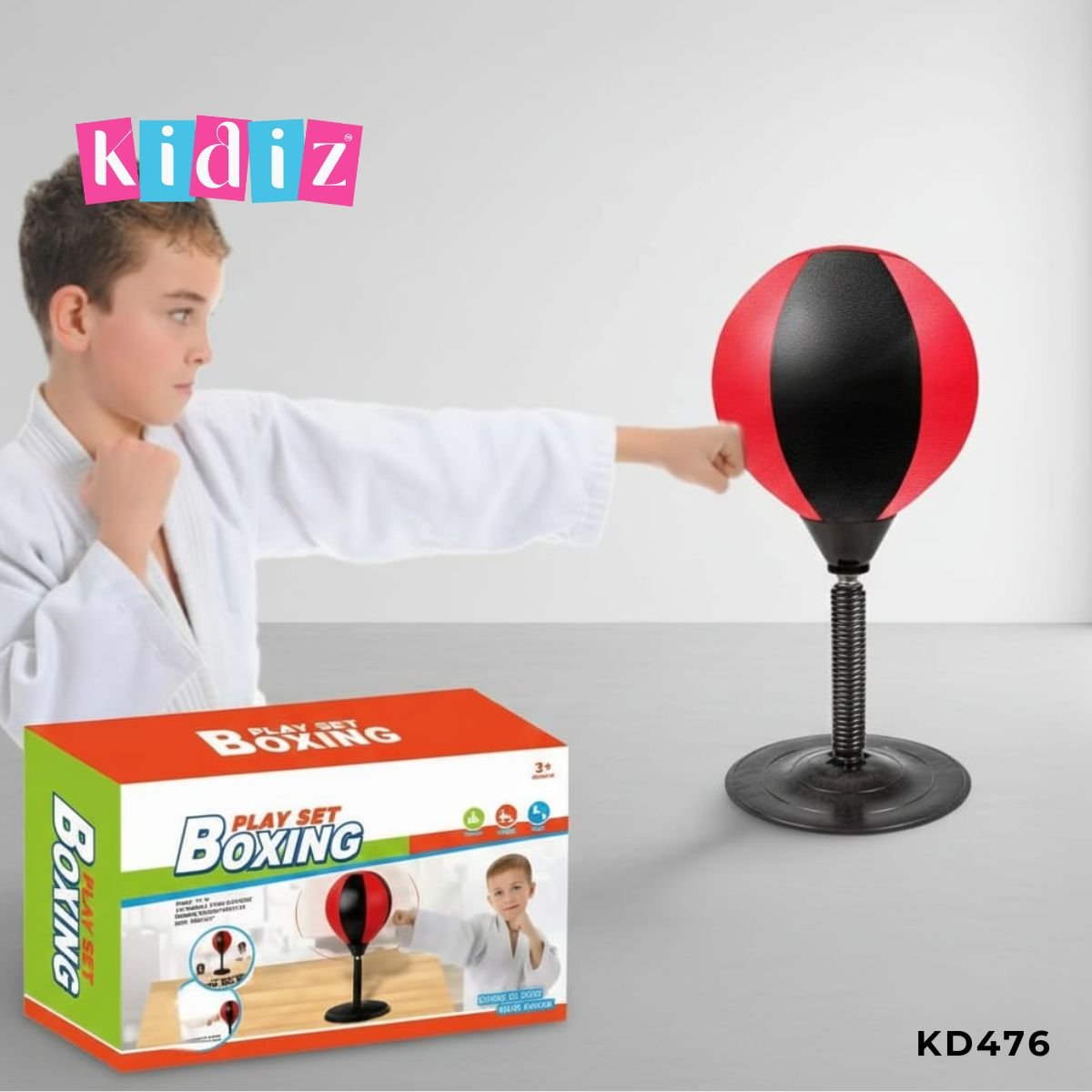 • Ballon de Frappe Robuste : Le ballon rouge et noir en similicuir est équipé d’un ressort de rappel haute performance. Il rebondit instantanément après chaque coup, forçant l’enfant à travailler son rythme, sa garde et sa synchronisation.