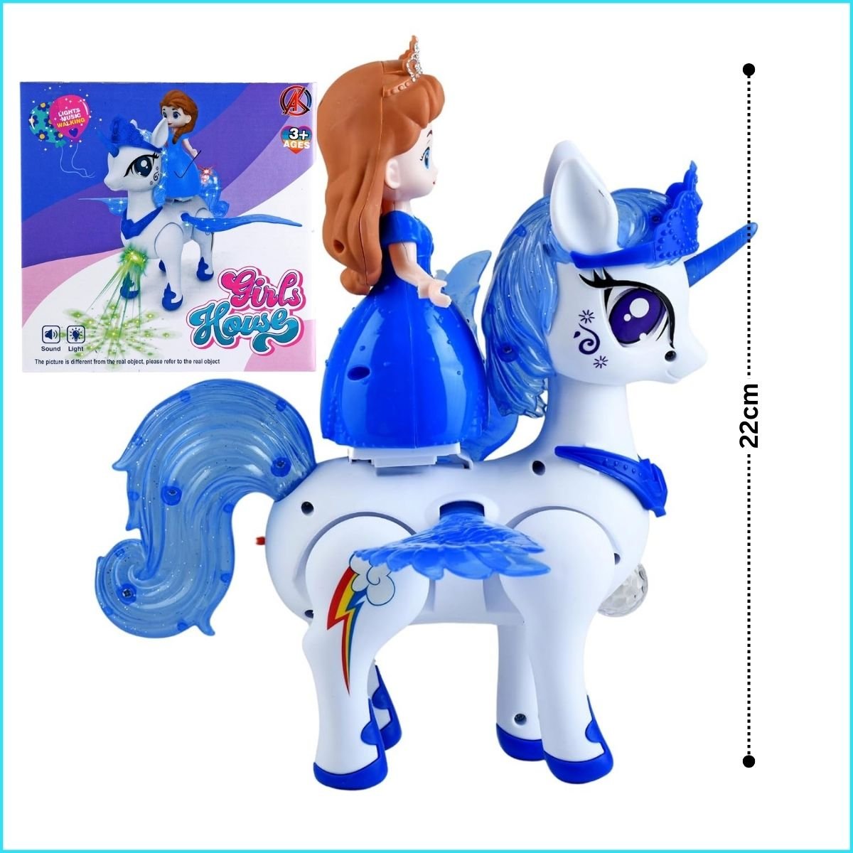 Mouvement Automatisé : La licorne n’est pas une simple figurine ; elle avance toute seule (« Walking ») pour entraîner la princesse dans ses aventures.