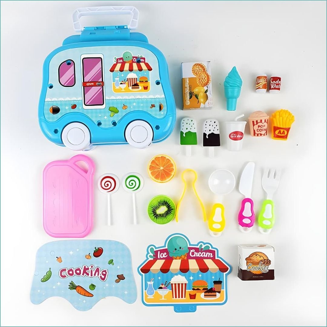 Le coffret comprend plusieurs accessoires pour enrichir l’expérience : cornets, glaces, cuillères et autres éléments réalistes. Ces détails permettent aux enfants de créer leurs propres compositions et d’inventer des histoires tout en développant leur motricité et leur créativité. C’est le jouet idéal pour combiner transport pratique et plaisir de jouer.